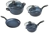 - 2-1/5-quart covered saucepan, 10-inch fry pan, 8-1/2-quart covered stockpot, and 3-1/5-quart covered saute pan